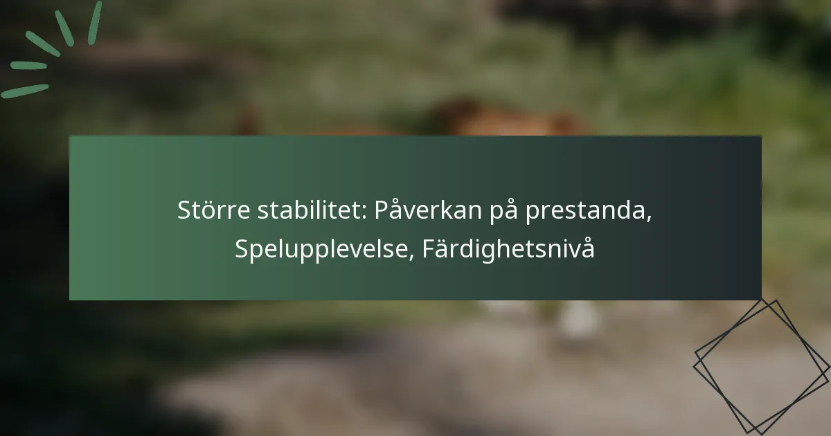 Större stabilitet kännetecknas av en spelares förmåga att prestera konsekvent under varierande förhållanden, vilket minimerar fluktuationer i prestationen. Denna stabilitet kan påverkas av fysiska, mentala och miljömässiga faktorer, vilket säkerställer att spelare kan utföra färdigheter effektivt oavsett externa påtryckningar. Inom både spel och sport leder uppnådd större stabilitet ofta till förbättrade resultat och ökad spelartillfredsställelse.